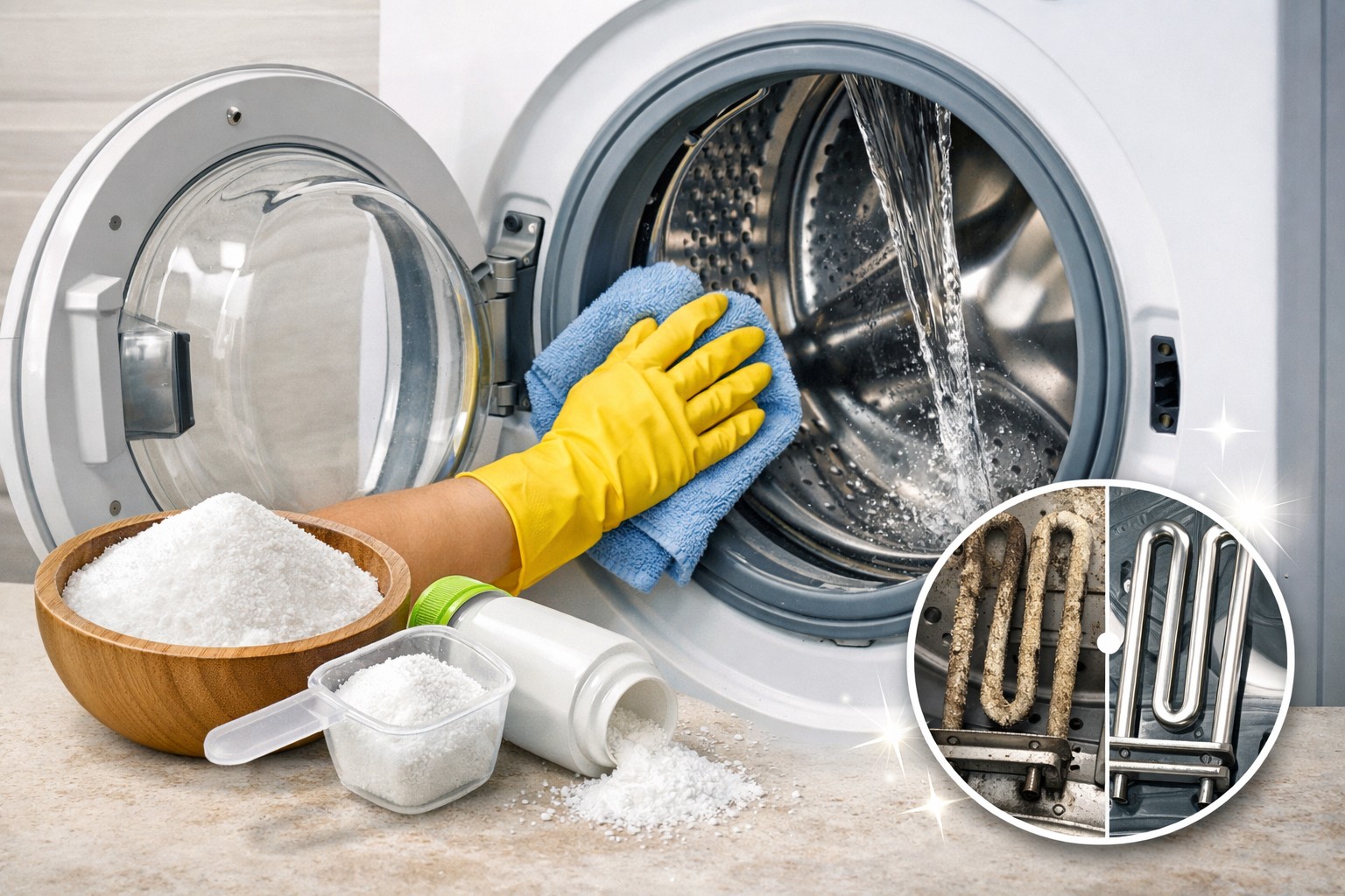 Birçok ev aleti sahibi sorunla karşı karşıyadır. ölçek, hoş olmayan koku Ve kireç tabakası iç parçalarda. Zamanla bu, ısıtma elemanının hasar görmesine neden olabilir (ısıtma elemanı) veya yıkama kalitesinde bozulma. Düzenli kullanmak sitrik asit Pahalı kimyasallar kullanılmadan ekipmana temizliği geri kazandırmanın kanıtlanmış ve etkili bir yoludur.